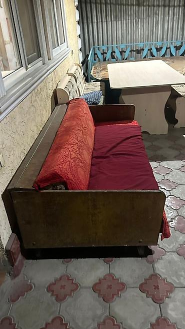 В г.Кант продаётся раскладной диван-кровать б/у, ткань потёрлась, имеются 3 дырочки. - Тип: прямой диван с мягкими подлокотниками - Механизм: раскладывается в полноценное спальное место (книжка/кл...