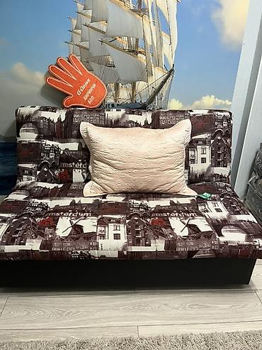 Компактный раскладной диван-кровать с двумя большими подушками. Особенности: - Тип: прямой двухместный диван с механизмом раскладывания в полноценное спальное место. - Конструкция: широкие прямые ...