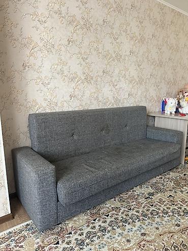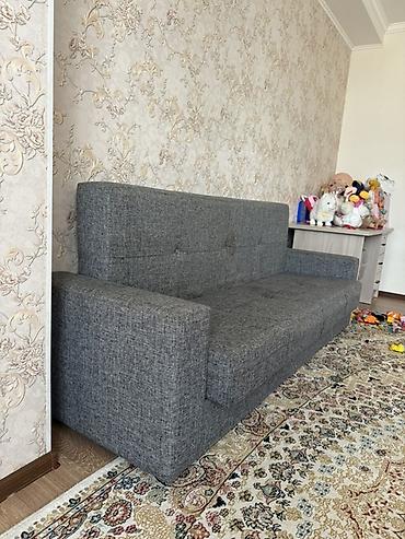 Раскладной диван в современном стиле, серо‑графитовая обивка. - Три большие съемные подушки спинки + одна центральная меньшего размера для дополнительной поддержки. - Широкие подлокотники с накла...