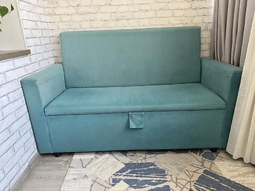 Бирюзовый диван-кровать с ящиком для белья - Компактный прямой диван с механизмом раскладки вперед (встроенный выдвижной блок снизу). - Вместительный короб для хранения под сиденьем. - Обивка: мяг...