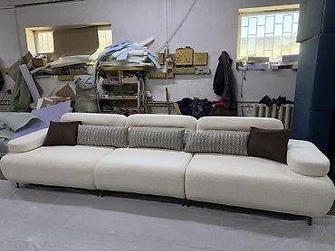 Дизайнерский диван в стиле модерн БУ - Цвет: молочный/айвори - Обивка: мягкий букле с выраженной фактурой, приятный на ощупь, визуально «тёплый» - Основание: декоративная база с металлическим эффе...