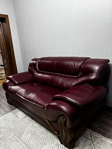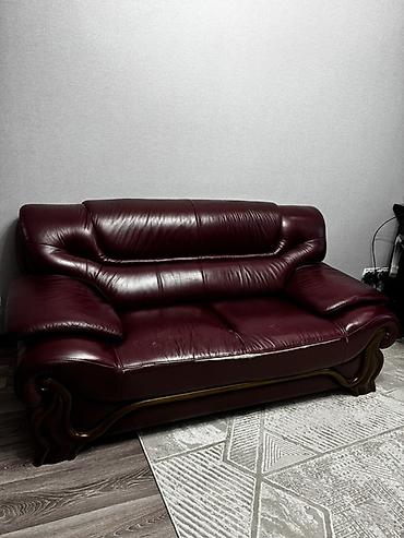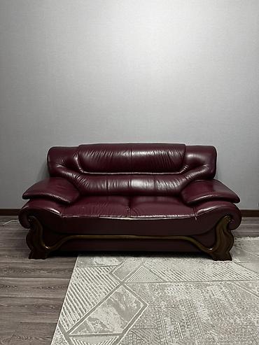 Диван двухместный, кожаный, бордовый.
