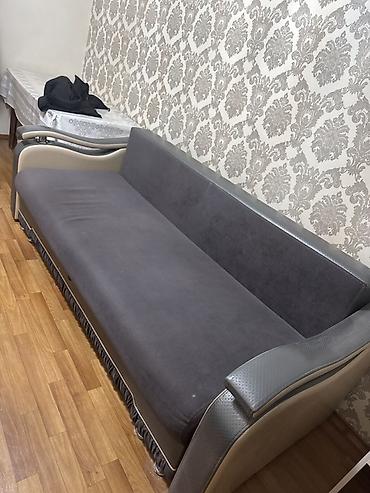 Диван трёхместный, прямой, в темно‑серой обивке. - Каркас: массив/ДСП, прочные подлокотники с накладками под дерево (защита от царапин и следов от кружек). - Обивка: мягкий износостойкий велюр/микр...