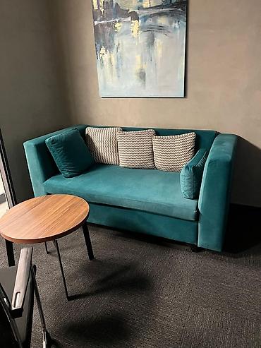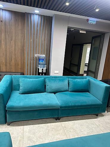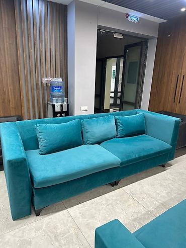 Два дивана по одной цене. Бирюзовый трехместный диван в современном стиле