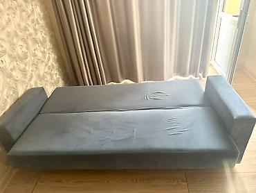 Раскладной диван. Серый диван-кровать с тканевой обивкой, оснащенный механизмом трансформации для создания дополнительного спального места. Модель имеет встроенный ящик для хранения белья, что позв...15 000 KGS