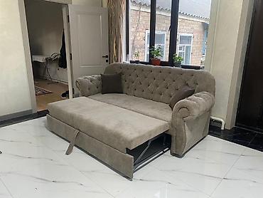 Раскладной диван с мягкими подлокотниками и каретной стяжкой (капитоне)