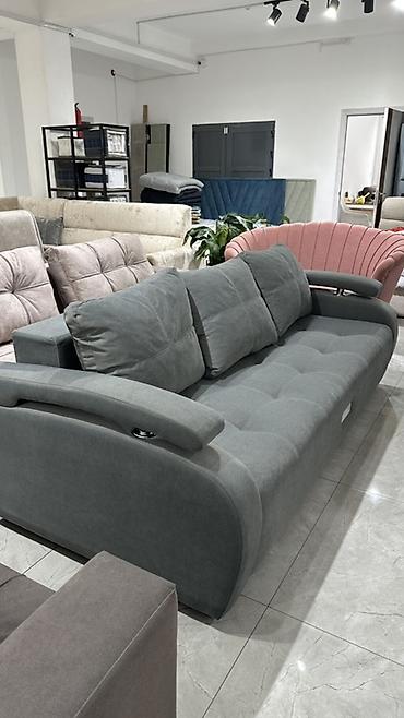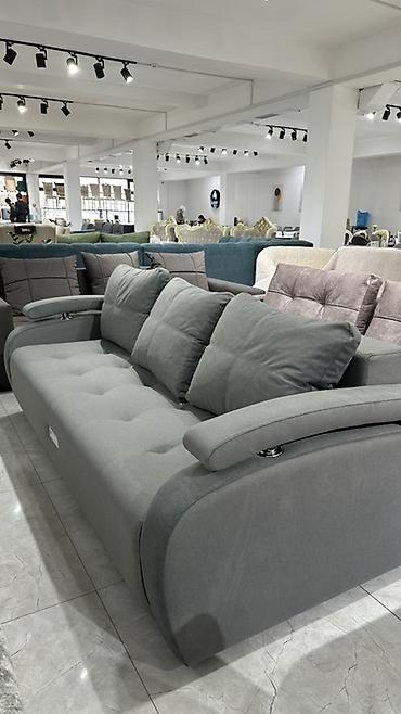 - Стильный современный дизайн: плавные закруглённые боковины, аккуратная стёжка на сиденье, три объёмные подушки спинки.