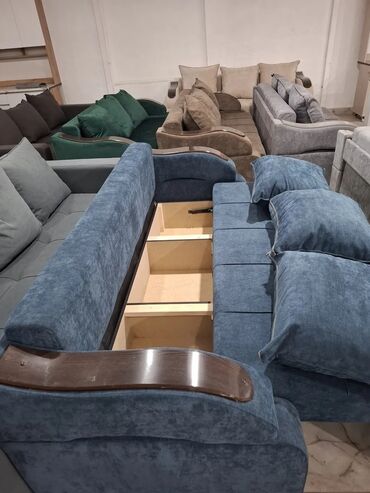 ГолубойПрямой диван-трансформер с нишей для хранения
