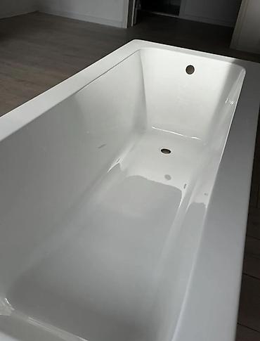 - Материал: глянцевый белый акрил с усилением стекловолокном снаружи (жесткое, теплое на ощупь покрытие, легко моется).