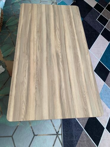 Прямоугольный стол из ЛДСП с рисунком под натуральное дерево.