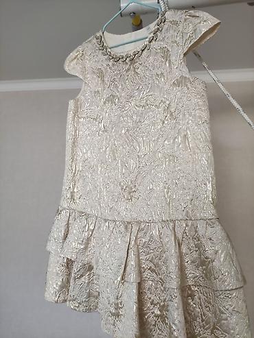 Нарядное детское платье, золотое с ожерельем! Размер 140 (6-10 лет).