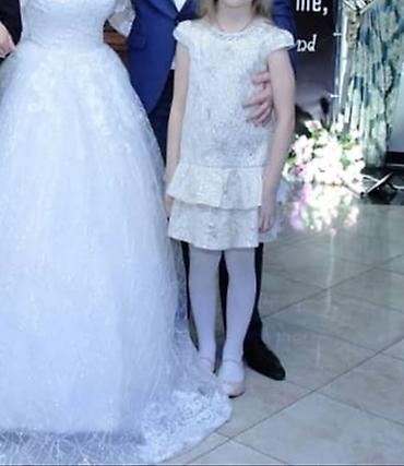 Нарядное детское платье в кремово-молочном оттенке. Подойдёт от 7 до 11 лет . б/ у цена 1500 сом вместе с туникой - Размер: на вешалке указан 56 (ориентируйтесь по меркам/фото). - Верх: плотный...