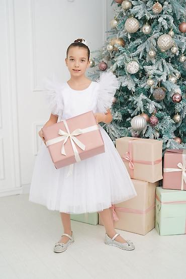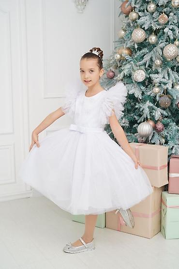 Детское праздничное платье «Белый ангел» на 6-7 лет, абсолютно новое, одевали 1 раз на НГ - Цвет: белый, многослойная фатиновая юбка с объемными ярусами - Материалы: верх — атлас, воздушные рукава...