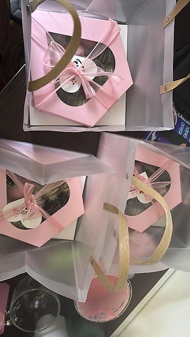 Подарочные наборы с десертами и напитками в декоративных коробках. Варианты компоновки: - Кофейный сет: банка растворимого кофе Jacobs Gold в сочетании с 6 капкейками с голубым кремом. Топпинги ка...