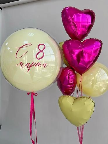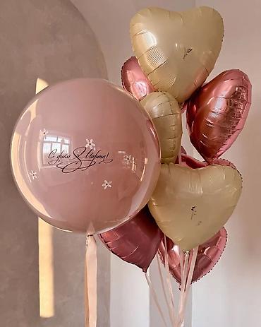 - Формы: круглые латексные, большие шары-бабблы, фольгированные сердца разных размеров.