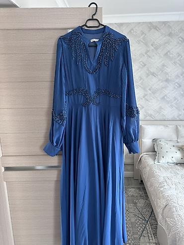 Праздничные платья с декором бисером/жемчужинами 1) Синее