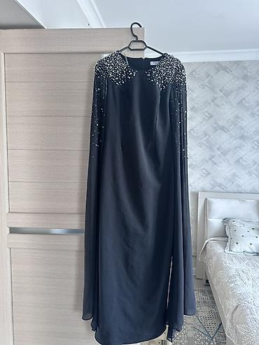 - Особенности: эффектная длинная накидка-каппа из шифона, интегрированная в конструкцию платья.