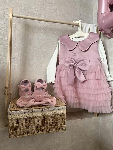 размер 90 подходит 1-1.5 годик. общий платья босоножки ободок 2000 сом Нарядный комплект для девочки в нежной пастельно‑розовой гамме с мотивами бабочек. Состав комплекта: - Пышное праздничное пл...