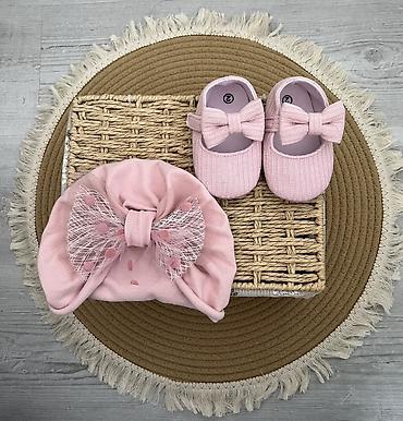 - Пинетки/туфельки текстильные розовые с бантиками.