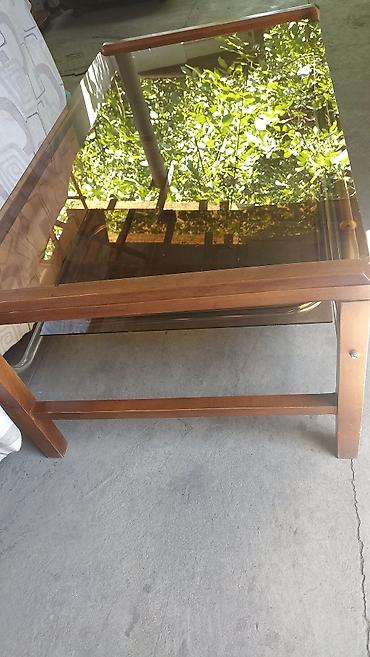 Продаю б/у журнальный столик деревянный 3000с - Высота: около 45–50 см Серый стол 1500с. Забрать можете с района Боконбаева/Советская возле 67 школы