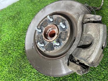 - На фото: тормозной диск с ступицей/шпильками и суппортом, предусмотрено место под датчик ABS
