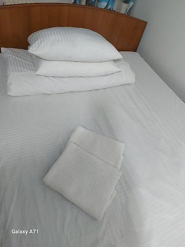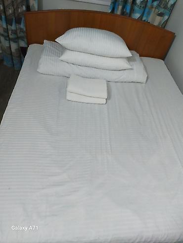 Представляем кровать с простым, но функциональным дизайном, идеально подходящую для спальни или гостевой комнаты. Кровать оснащена деревянным изголовьем коричневого оттенка с изогнутой верхней частью, добавляющей классический штрих. Матрас покрыт белым постельным бельем с полосатой текстурой, создающим аккуратный и свежий вид. Комплект включает две белые подушки и сложенное белое одеяло/покрывало, обеспечивающие комфорт. Эта кровать станет практичным дополнением к любому интерьеру.