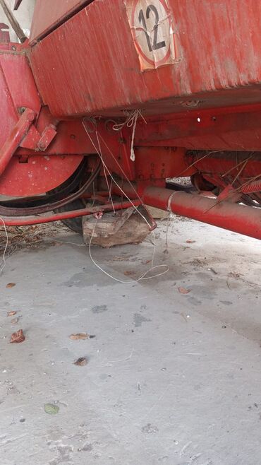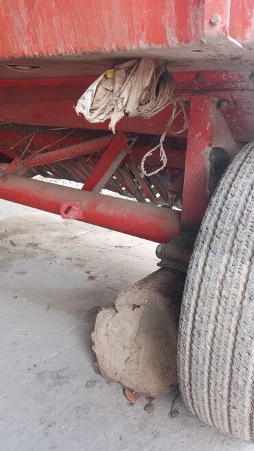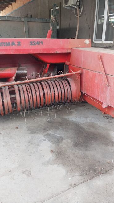 Пресс‑подборщик тюковый (шнековый подборщик, камера прессования, узловязатели). Красный, прицепной, привод от ВОМ трактора через кардан. На борту маркировка «224/1». Оснащён:
