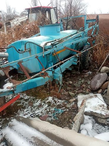 - Прицепной опрыскиватель/емкость с рамой (голубой цвет) — бак цилиндрический, штанговая конструкция, одноосная тележка.