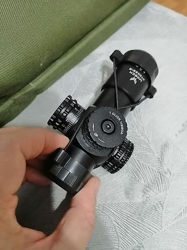 - Подсветка прицельной марки (IR), регулировки по вертикали/горизонтали с шагом “1 click 1/2 MOA” (указано на барабане).