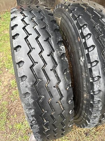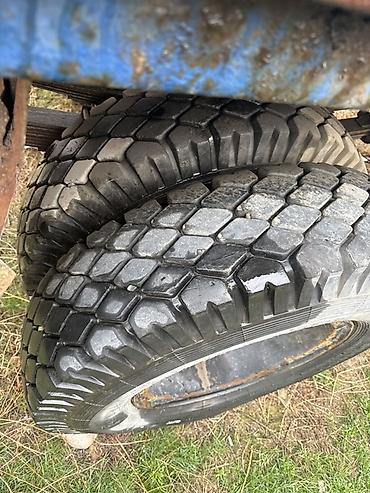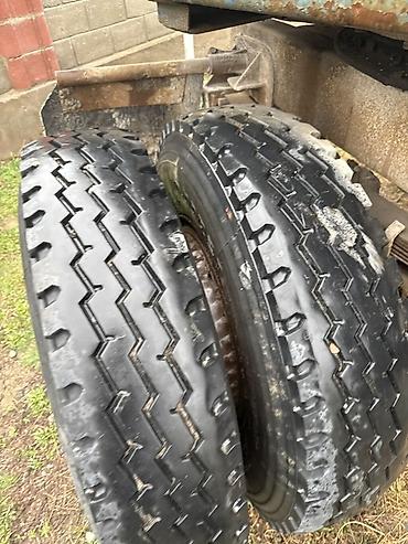 - Разные типы протектора на осях: дорожный «елочка/зигзаг» и внедорожный крупноблочный.
