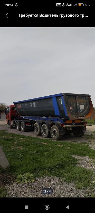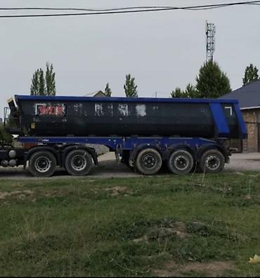 Самосвальный полуприцеп Тонар (синего цвета), трехосный. Основные характеристики по фото: - Кузов полукруглый стальной, рассчитан на перевозку сыпучих и инертных материалов (песок, щебень, грунт, ...