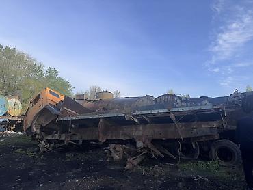 - Есть остатки рам, рессор, опор, коробов под инструмент, элементы арматуры и трубопроводов.