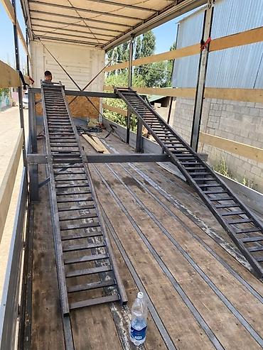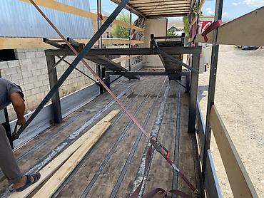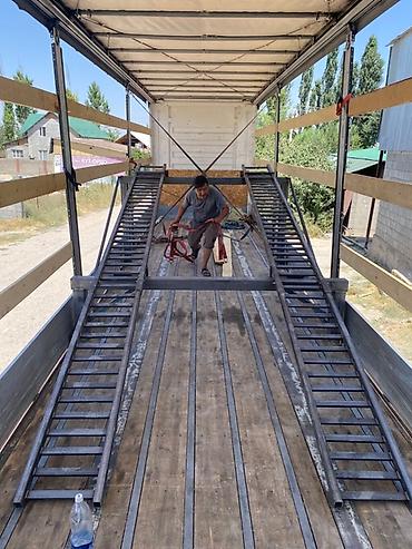 2025 года выпуска. Платформа-длина 13 метров, ширина 2,55 метра, 12 колес, может перевозить 45 тонн груза. Без таможенного оформления. Доставка возможна в Ош или Бишкек. Цена — 11 500 долларов США.