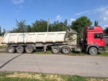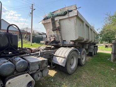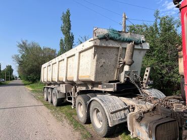 Полуприцеп-самосвал (трехосный) Описание: - Кузов: стальной/металлический, прямоугольный, усиленные борта, задний откидной борт. - Тип разгрузки: задняя, гидроцилиндр фронтального подъема. - Шасси...