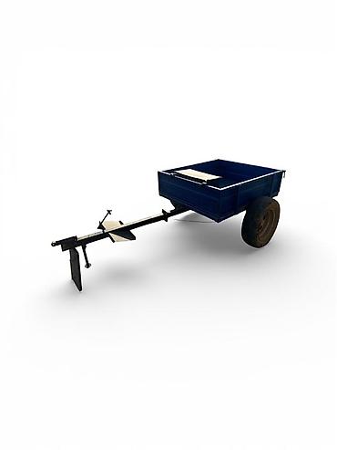 - Одноосный прицеп с металлическим кузовом синего цвета
