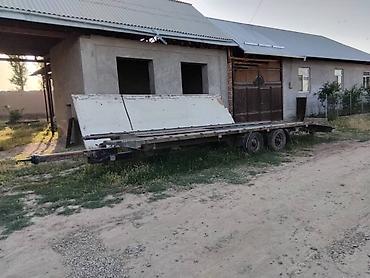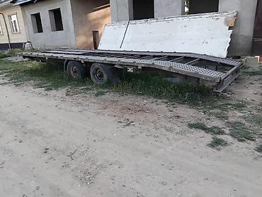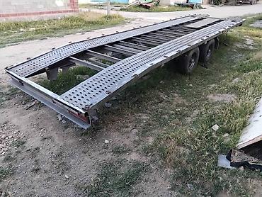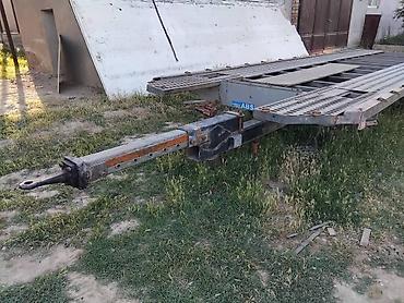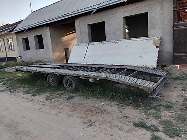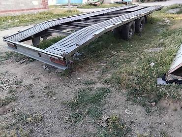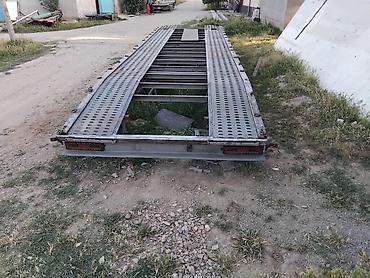 Габариты по фото: длинная плоская платформа с сужением к носу, ориентировочно под один легковой автомобиль. Возможна доработка под лебёдку, аппарели и электроразводку под тягач.
