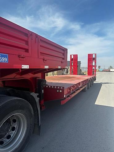 Низкорамный трал (полуприцеп-тяжеловоз) 4-осный, красный.