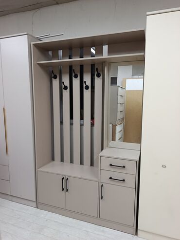 Прихожая модульная в светлом исполнении. Состав: - Панель с 8 двойными крючками для верхней одежды и сумок - Верхняя полка для головных уборов и аксессуаров - Зеркало в вертикальной раме в полный ...