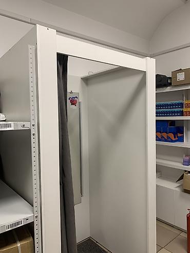 Примерочные кабинки для магазина одежды - Конструкция: две отдельные кабинки, каркас из ЛДСП светлого древесного оттенка, верхняя балка объединяющая, боковые панели с крючками для одежды. - Шторы:...