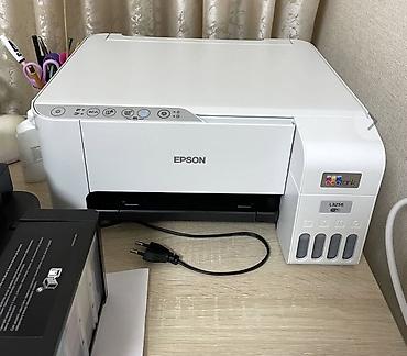 Комплектация на фото включает: принтер, набор бутылочек с чернилами EcoTank, кабель/упаковку.