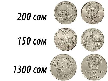 Также по 200 сом мы покупаем юбилейные монеты ссср 5 рублей, 3 рубля битва под москвой 300 сом, 3 руб армения и 70 лет воср по 150 сом, 5 руб 70 лет воср шайба 1300 сом