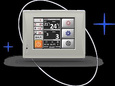 Полностью контролирует работу установки. Отслеживает температуру на улице и внутри помещения. Возможно подключение датчика СО2, интеграция в систему "Умного дома", управление через смартфон