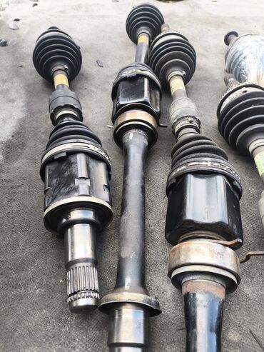 Платная доставкаКамри 30-35 -40 - 45.....Набор приводных валов, предназначенных для передачи крутящего момента от коробки передач к колесам автомобиля. Каждый вал оснащен шарнирами равных угловых скоростей (ШРУСами), защищенными гофрированными резиновыми пыльниками, что обеспечивает гибкость и защиту от загрязнений. Валы представлены в различных конфигурациях, что указывает на их применимость к разным моделям автомобилей или осям. Эти компоненты являются ключевыми для системы привода, обеспечивая плавное и надежное движение.