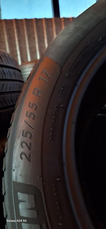 Комплект из 4 летних шин для легкового автомобиля. Характеристики: - Размер: 225/55 R17 (маркировка читается на борту) - Тип: летние, асимметричный/направленный рисунок протектора для устойчивости...