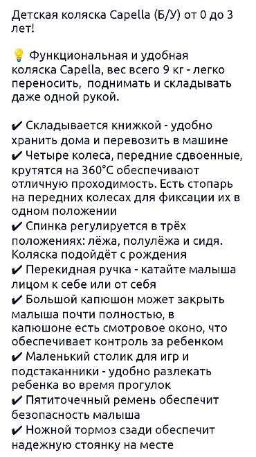❗❗❗ СРОЧНО ❗ ❗ ❗ Коляска "Capella" Все идеально работает. Надо просто ее помыть. 2000с