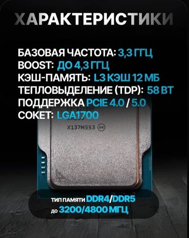 НАРОДНЫЙ ПРОЦЕССОР. Процессор Intel Core i5 12400F частота 2.50Ghz up to 4.40Ghz 6 ядер / 12 потоков. L3 Cashe 18MB сокет LGA1700 новый Гарантия 9 месяцев . есть Trade In. отличный проц для совр...