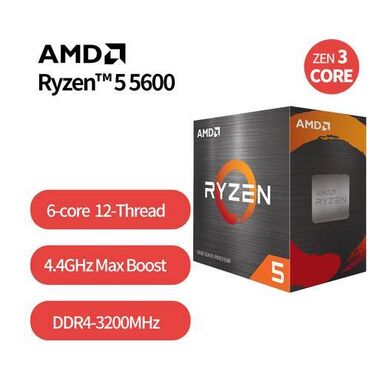 Процессор AMD Ryzen 5 5600 BOX [AM4, 6 x 3.5 ГГц, L2 - 3 МБ, L3 - 32 МБ, 2 х DDR4-3200 МГц, TDP 65 Вт, кулер] Новый, не распакованный. Боксовая версия с оригинальным кулером.
