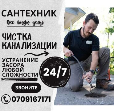 Сантехнические услуги. Профессиональная прочистка канализации 24/7.
