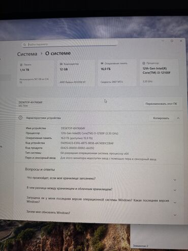 Компьютер, ядер - 6, ОЗУ 16 ГБ, Для работы, учебы, Б/у, Intel Core i5, AMD Radeon RX 580, SSD