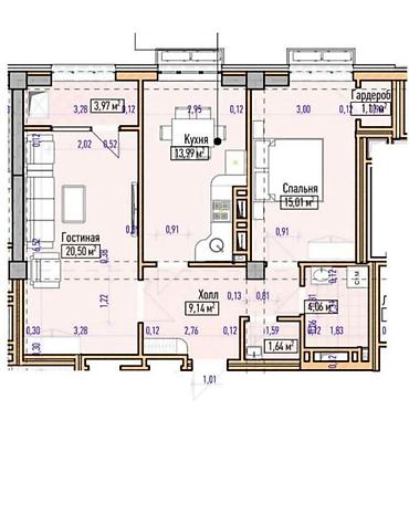1 комната, 49 м², Элитка, 6 этаж, Готовая ПСО (под самоотделку)